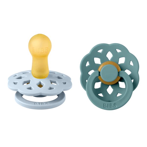 BIBS De Lux est une nouvelle version exclusive de la sucette iconique BIBS Color. Il est livré avec un élégant froncement caché dans une finition mate améliorée pour un look Premium. Le mamelon en forme de cerise et le bouclier léger mat sont conçus pour imiter la forme du sein d'une mère.