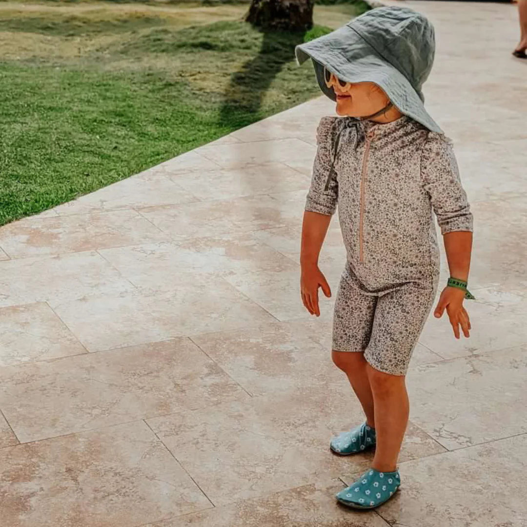 Son tissu certifié UPF 50+ et extensible procure à la fois une grande souplesse et un grand confort car il permet à votre enfant de plier ses petits pieds sans pression inconfortable.