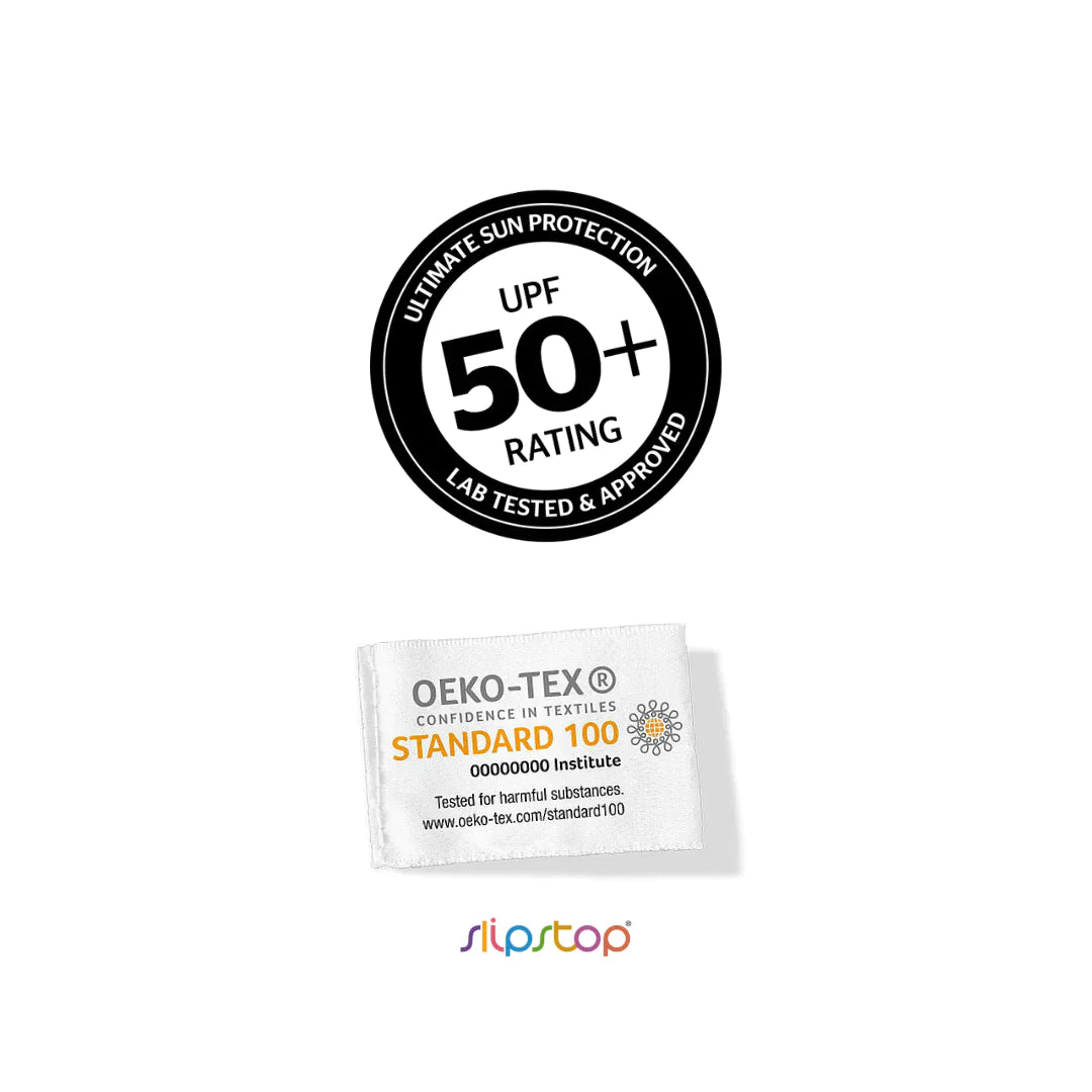 Son tissu certifié UPF 50+ et extensible procure à la fois une grande souplesse et un grand confort car il permet à votre enfant de plier ses petits pieds sans pression inconfortable.