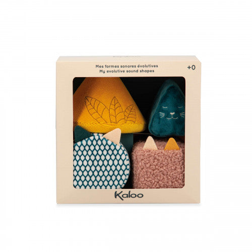 Ce set de formes sonores évolutives fait partie de la gamme Stimuli de KALOO, développée en collaboration avec des psychomotriciens pour aider bébé à développer ses compétences sensorielles et motrices dès la naissance.